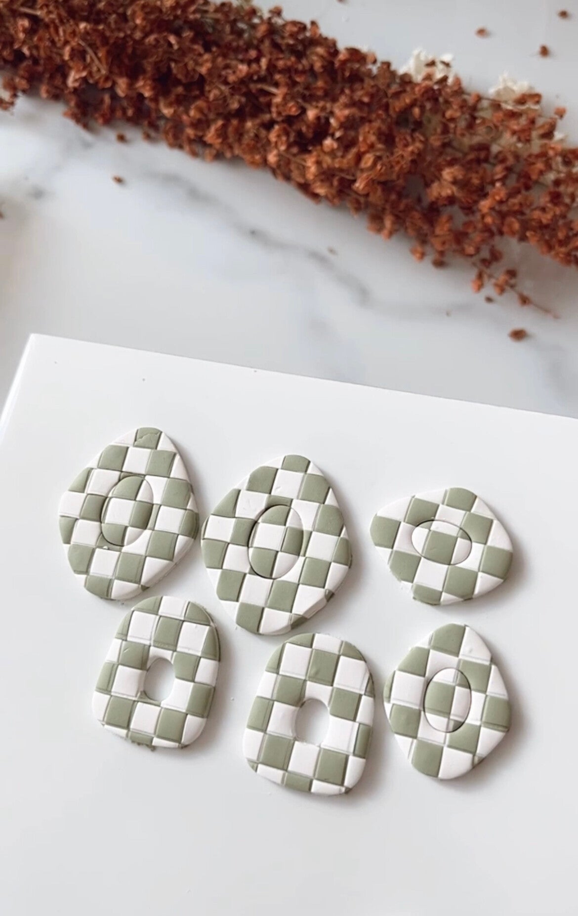 kantel je gestreepte klei en maak er nog eens markeringen op aan met de checkerboard en je hebt een strak geblokt patroon
