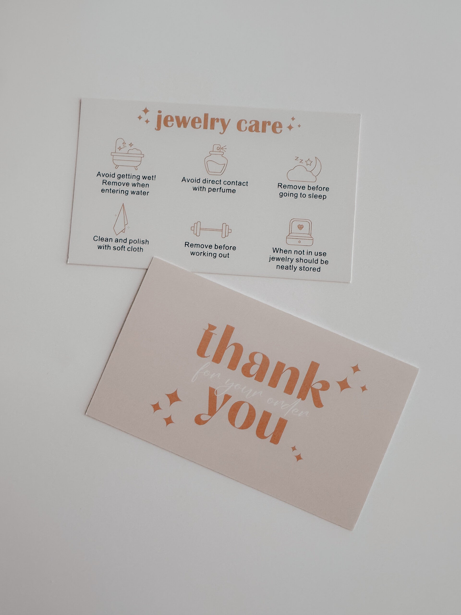 Super leuk voor in je bestelling, als bedank kaartje en tegelijkertijd een handige sieraden onderhoud tips, zodat de klant beseft voorzichtig om te gaan met de gekochte sieraden